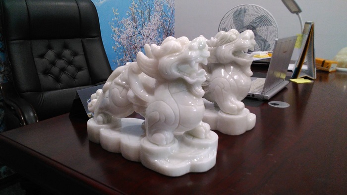 Ngoài những khối đá trắng mịn thì đá tự nhiên Yên Bái có loại trắng xanh rất đẹp. Màu xanh phảng phất hòa với màu trắng đẹp tựa hồ như ngọc quý. Chế tác tượng đá tỳ hưu trắng xanh luôn toát lên nét đẹp cuốn hút được nhiều người lựa chọn.