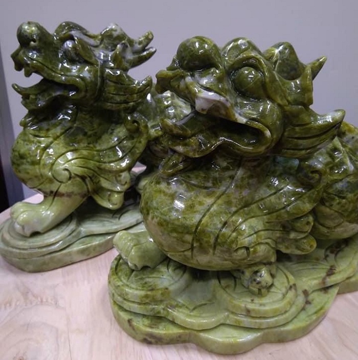 Lựa chọn tượng tỳ hưu đá xanh với các chủng loại thạch anh, đá quý serpentine nguyên khối. Màu sắc xanh của đá tự nhiên Yên Bái cũng có nhiều lựa chọn: đá lam ngọc, đá lục ngọc… Chủ nhân sở hữu tượng tỳ hưu đá xanh nên là gia chủ mệnh Mộc, mệnh Thủy. Gia chủ mệnh Hỏa cũng có thể chọn tượng đá màu xanh lục.