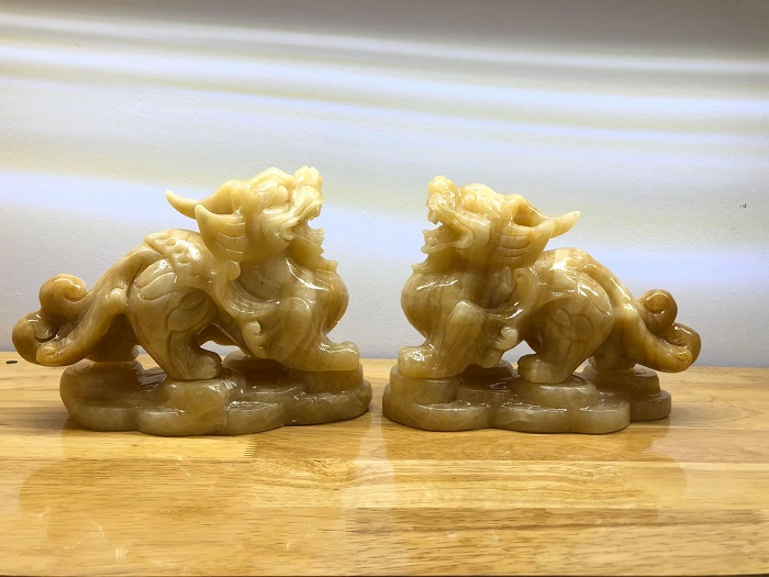 Tỳ hưu vàng là vật phẩm cũng hiếm có khó tìm. Các mẫu đá tự nhiên màu này có nét đẹp tựa ngọc quý nên luôn hút khách. Những người mệnh Thổ, Hỏa dùng tượng tỳ hưu vàng cực lý tưởng.